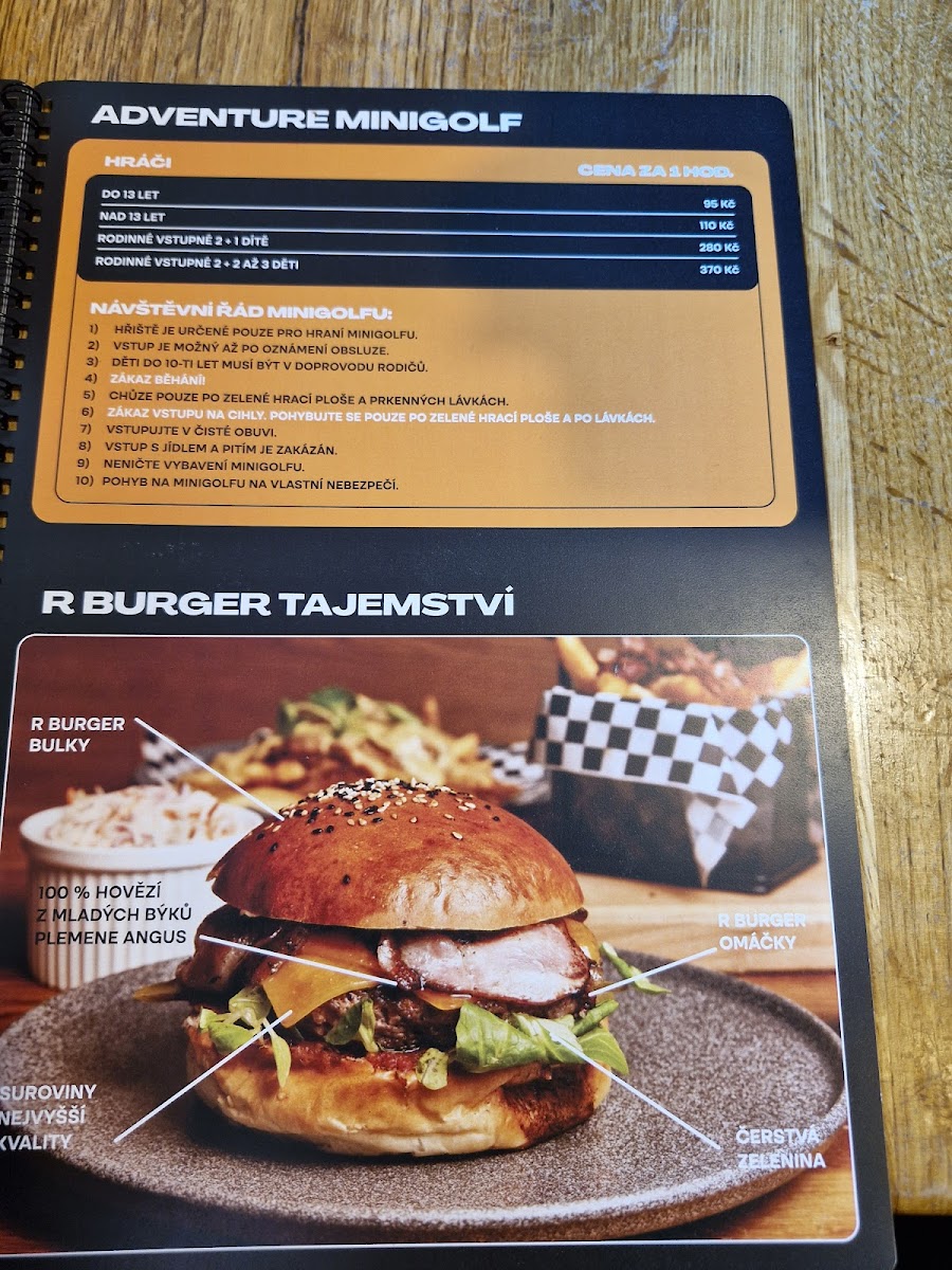 Welcome to R Burger & Minigolf, a delightful culinary gem nestled in Rýchorské sídl. This unique dining destination combines mouth-watering burgers with fun-filled minigolf, making it perfect for family outings or casual hangouts. Imagine biting into a juicy Angus beef burger, lauded by patrons as one of the best around. Reviews highlight not just the exceptional quality of the ingredients, but the fast, attentive service that makes each visit memorable.